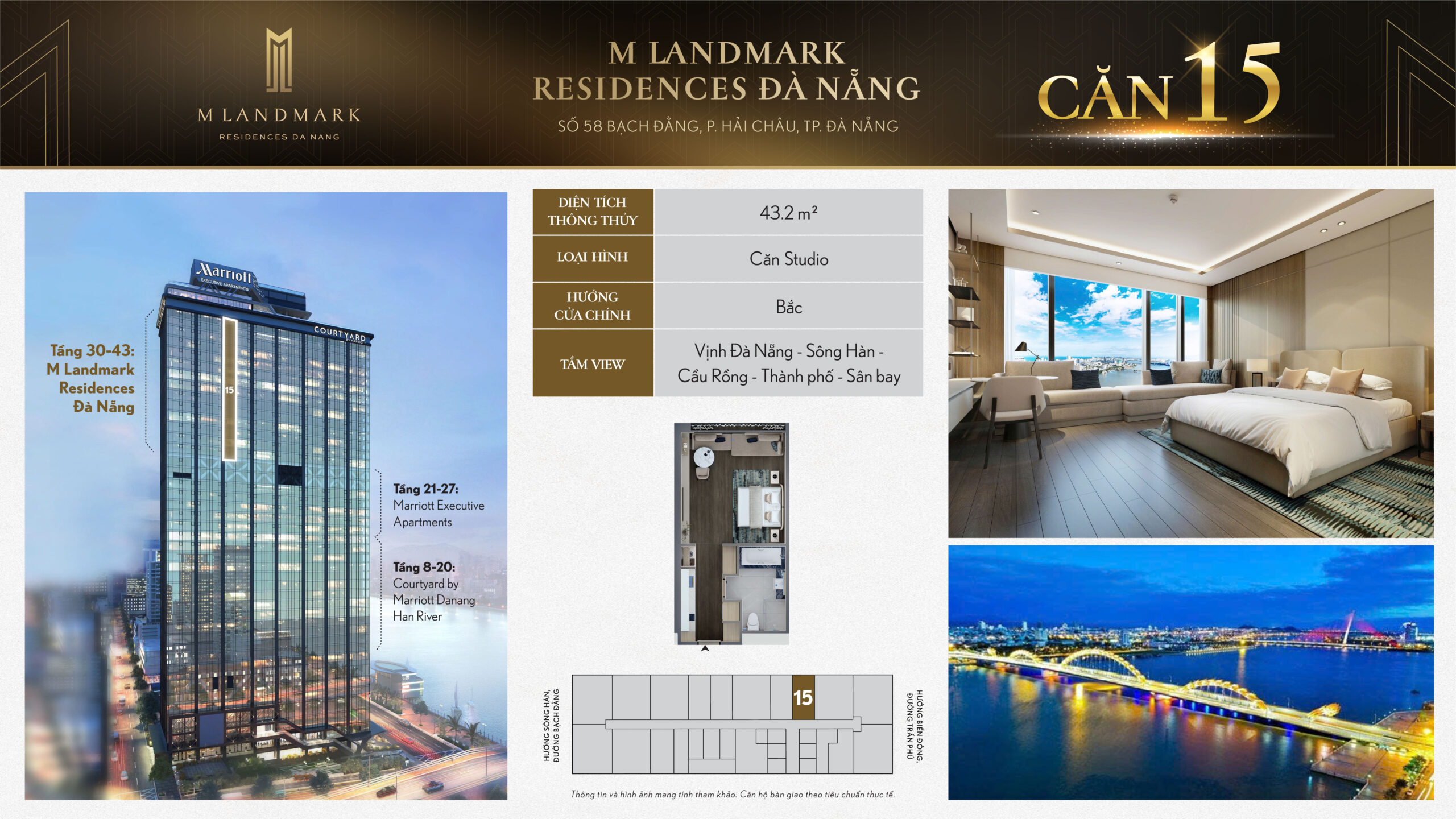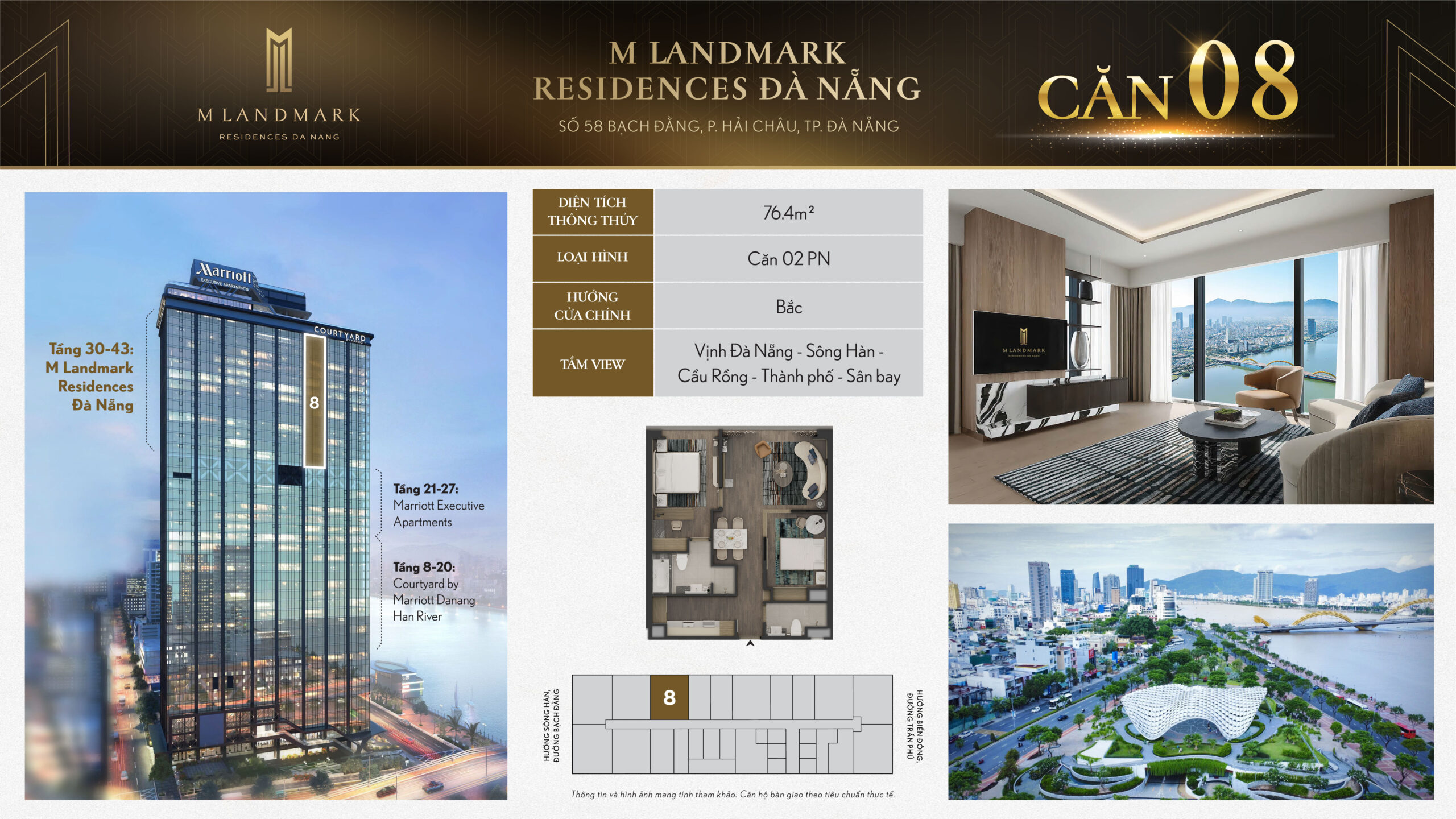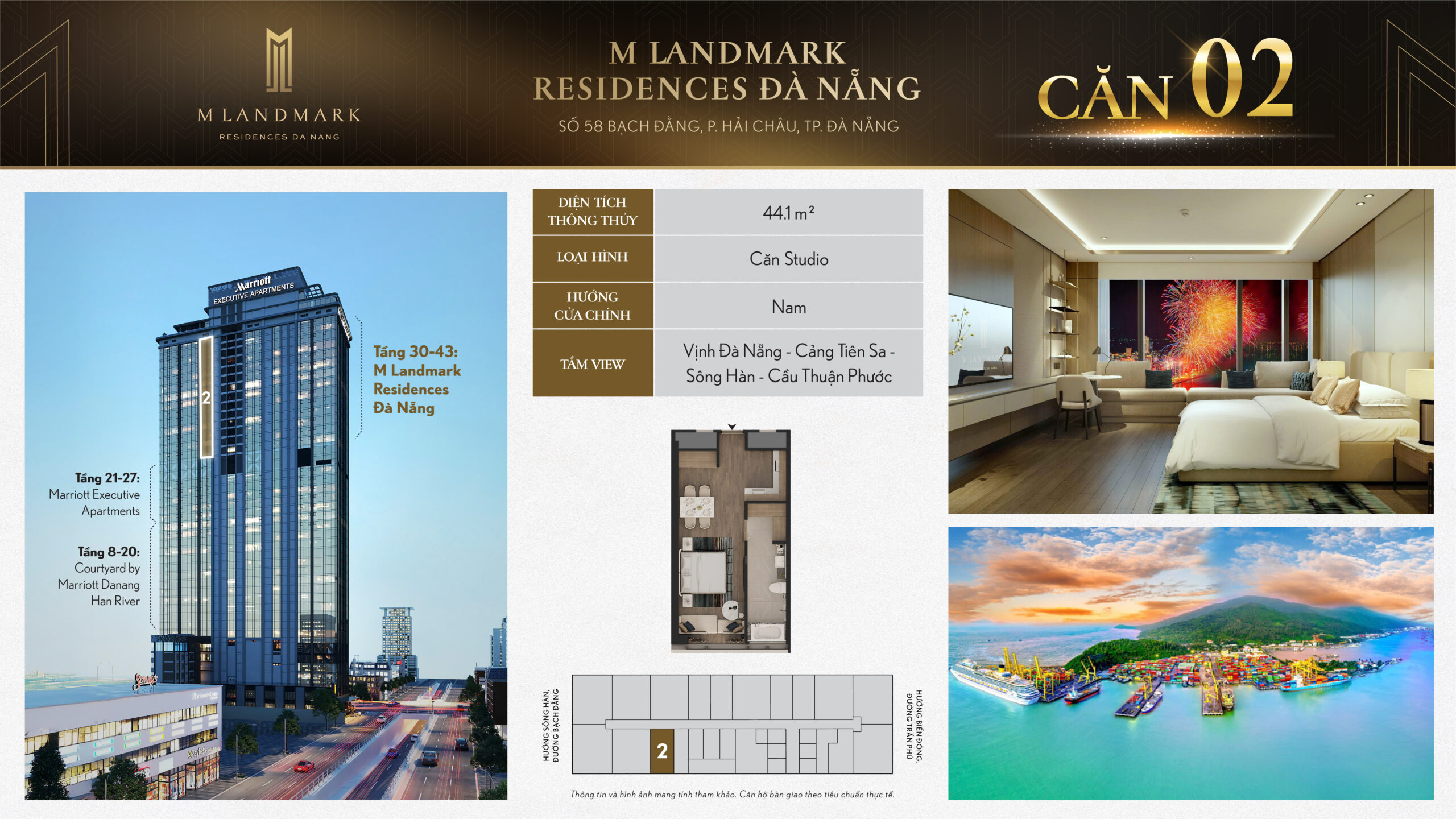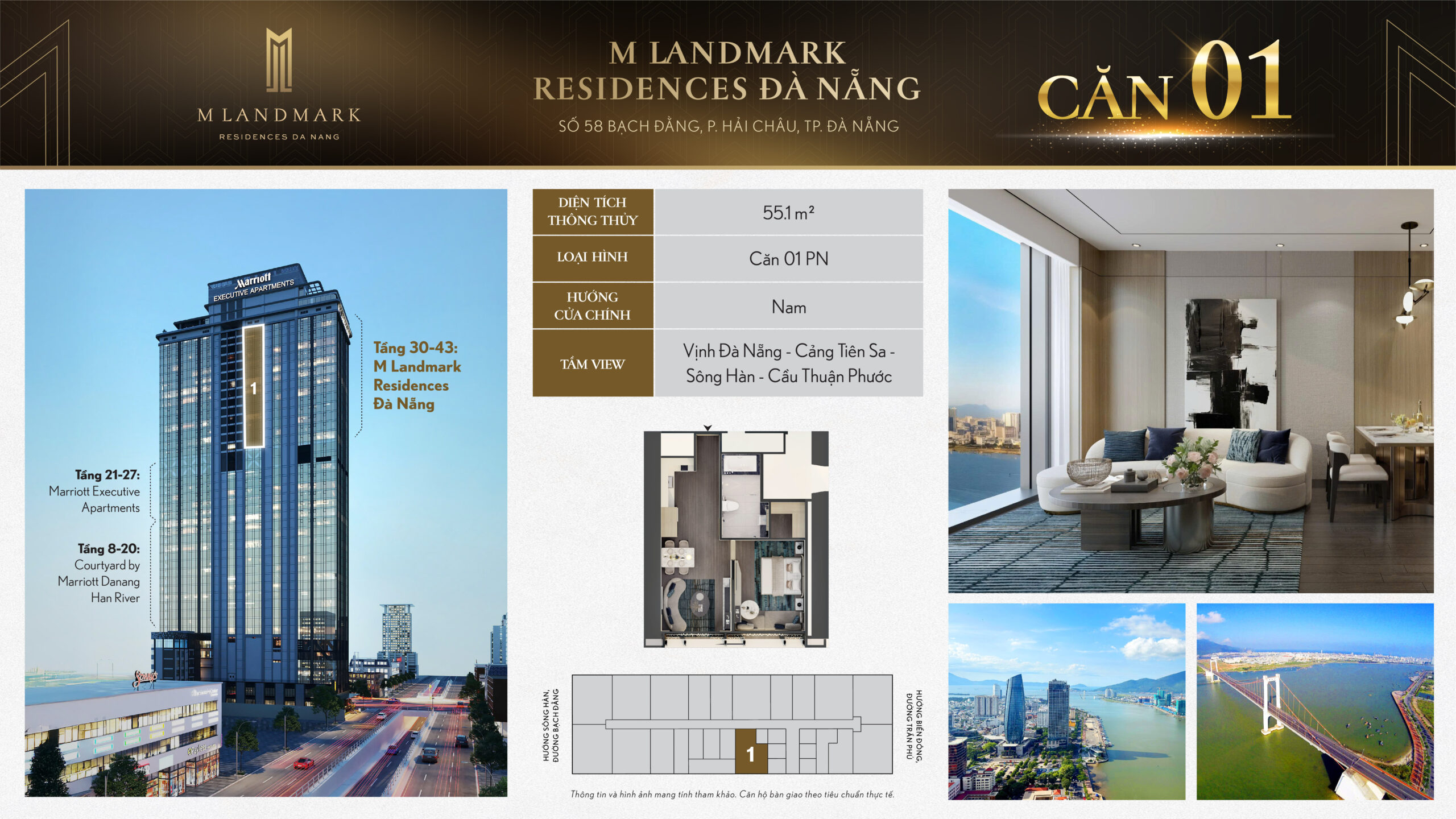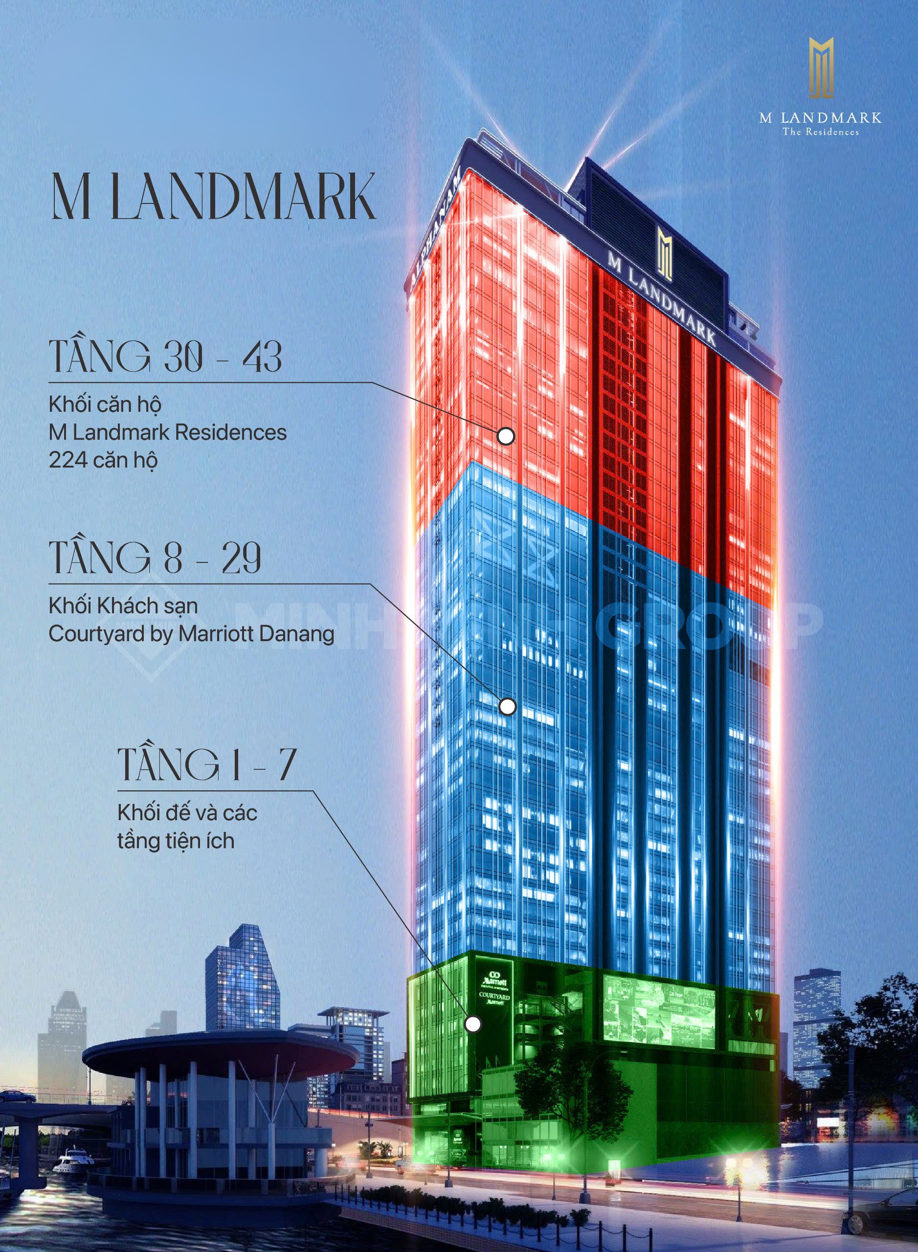 M Landmark Đà Nẵng – 224 căn hộ hạng sang tầng 30-44 tại 58 Bạch Đằng, view sông Hàn, vận hành bởi Marriott
