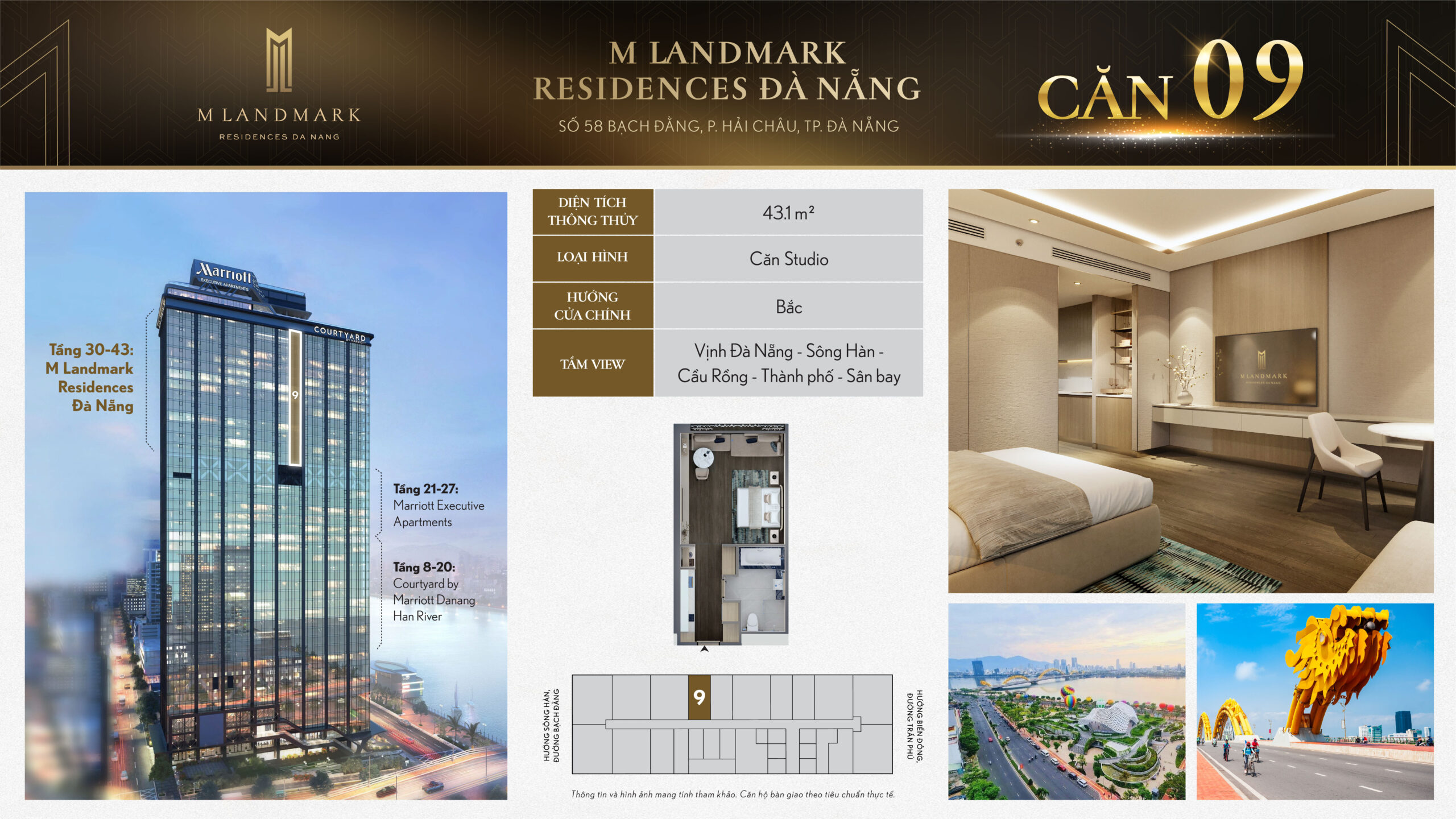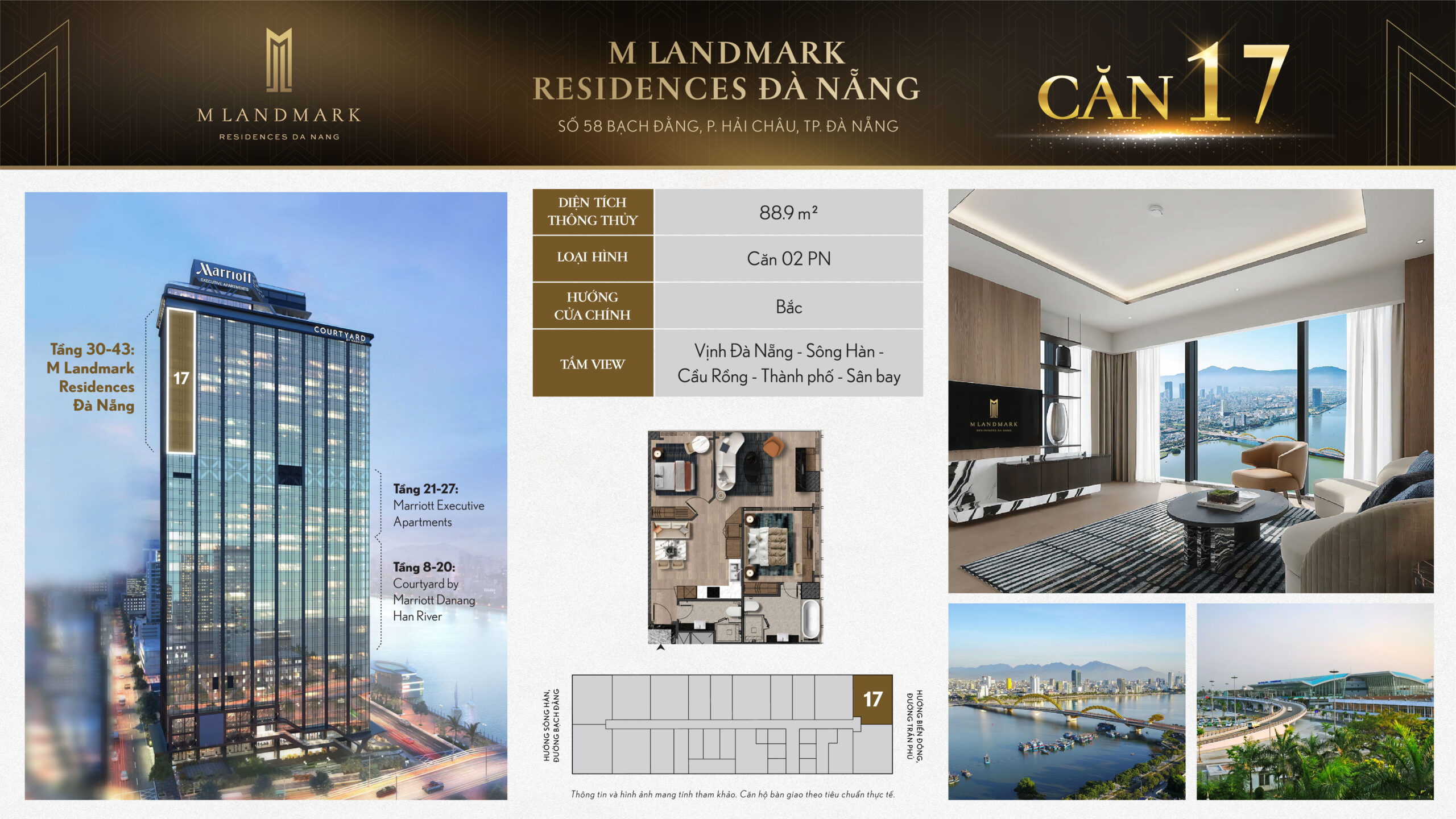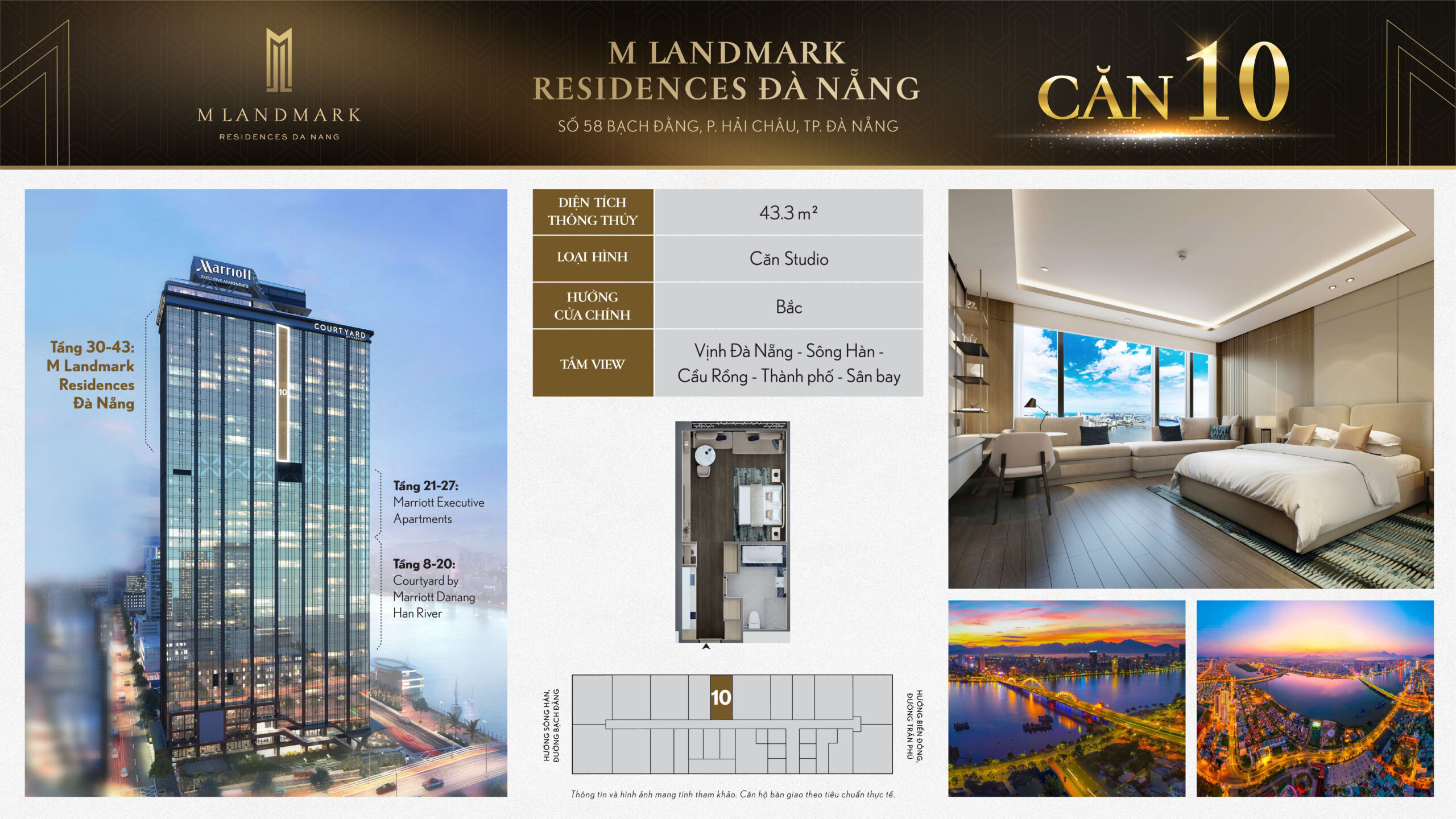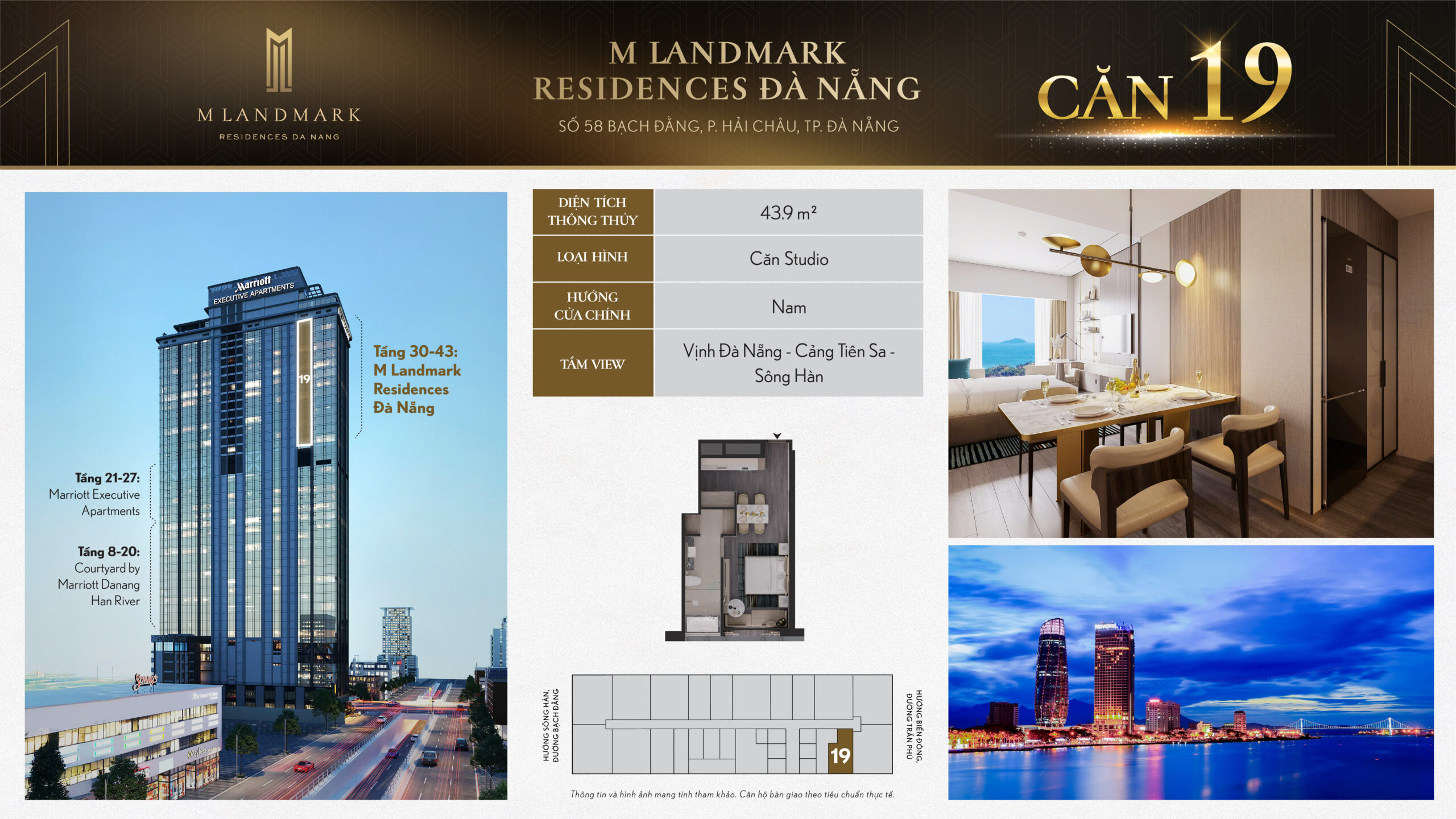 M Landmark Đà Nẵng – 224 căn hộ hạng sang tầng 30-44 tại 58 Bạch Đằng, view sông Hàn, vận hành bởi Marriott