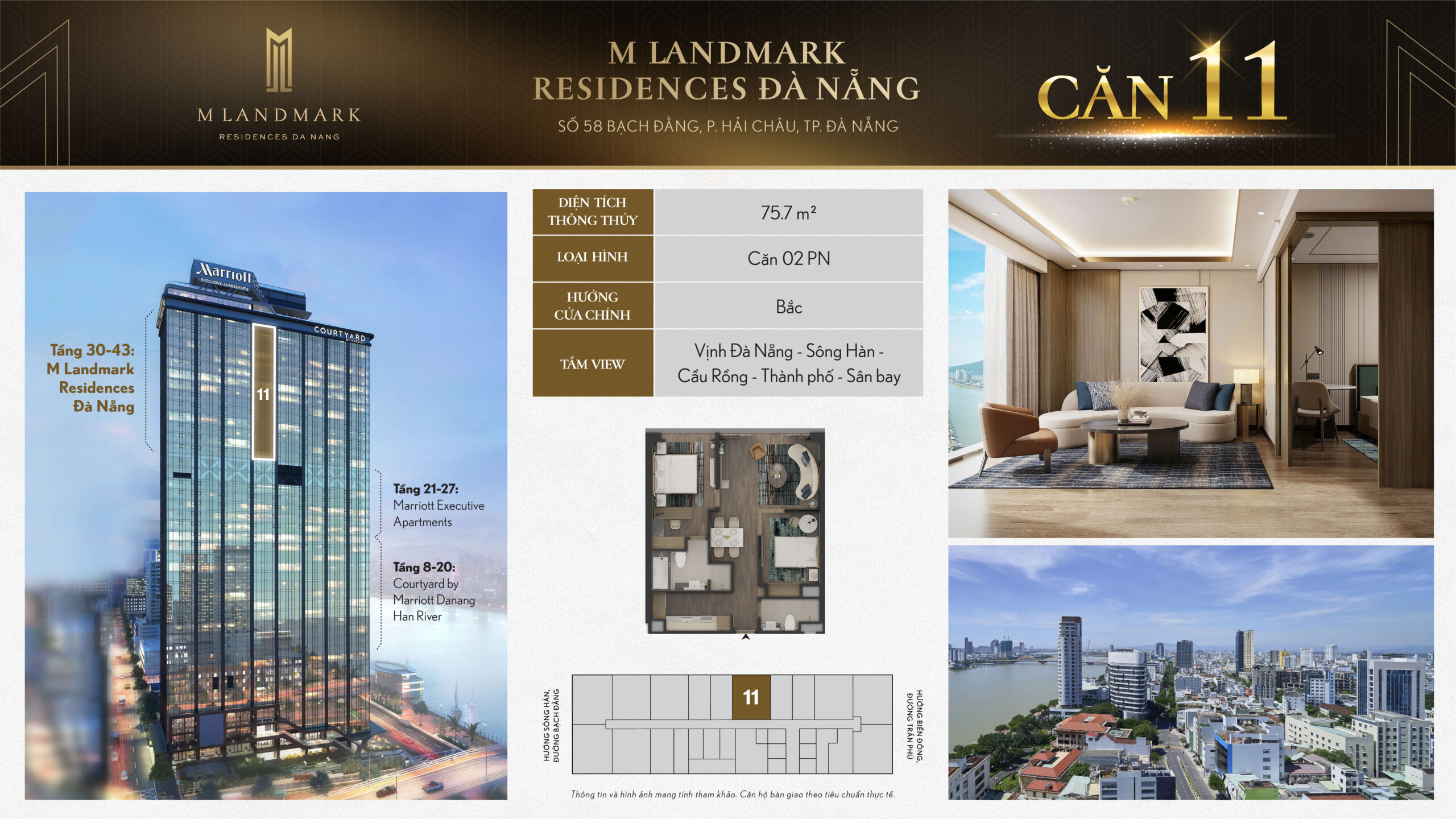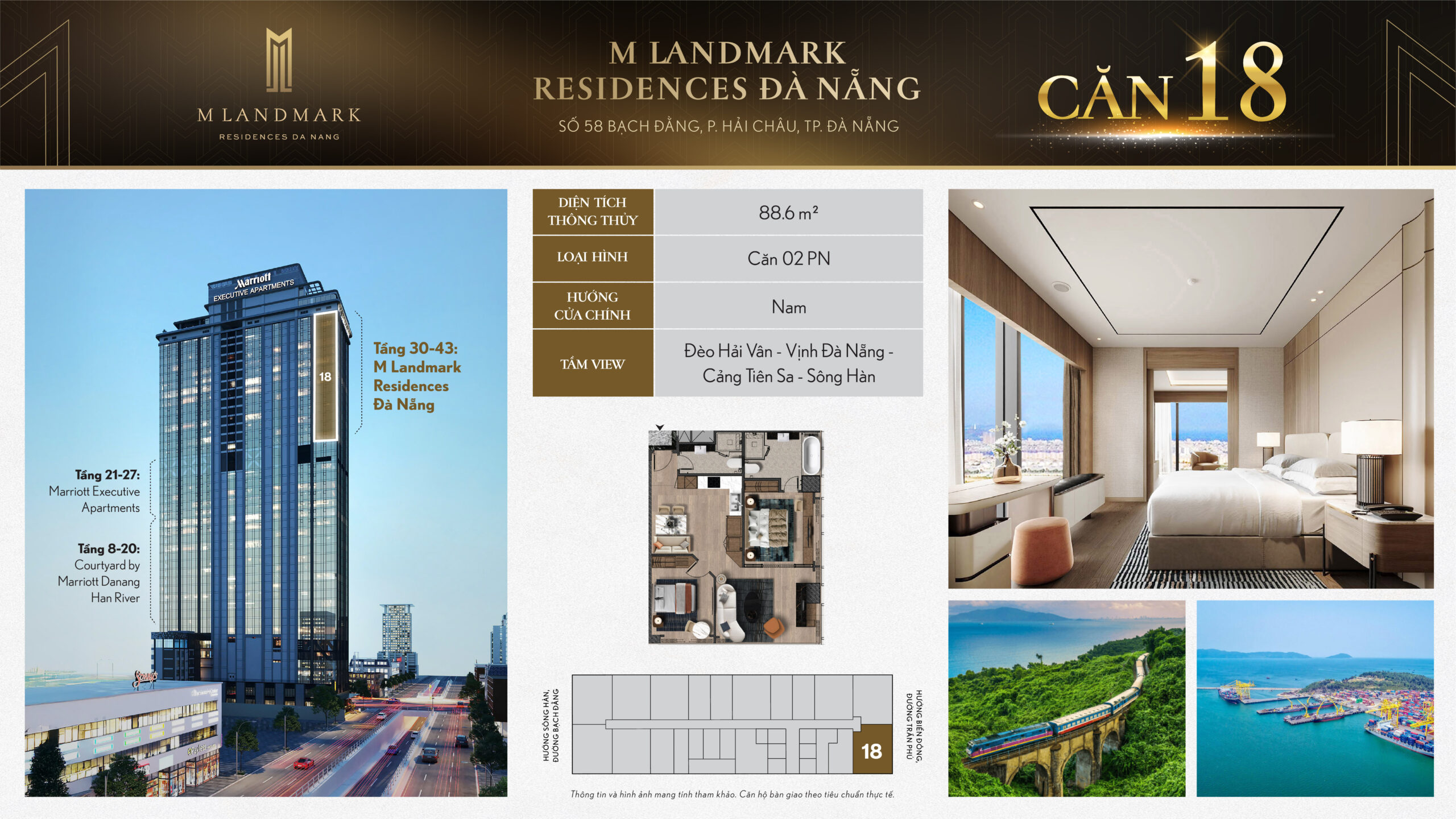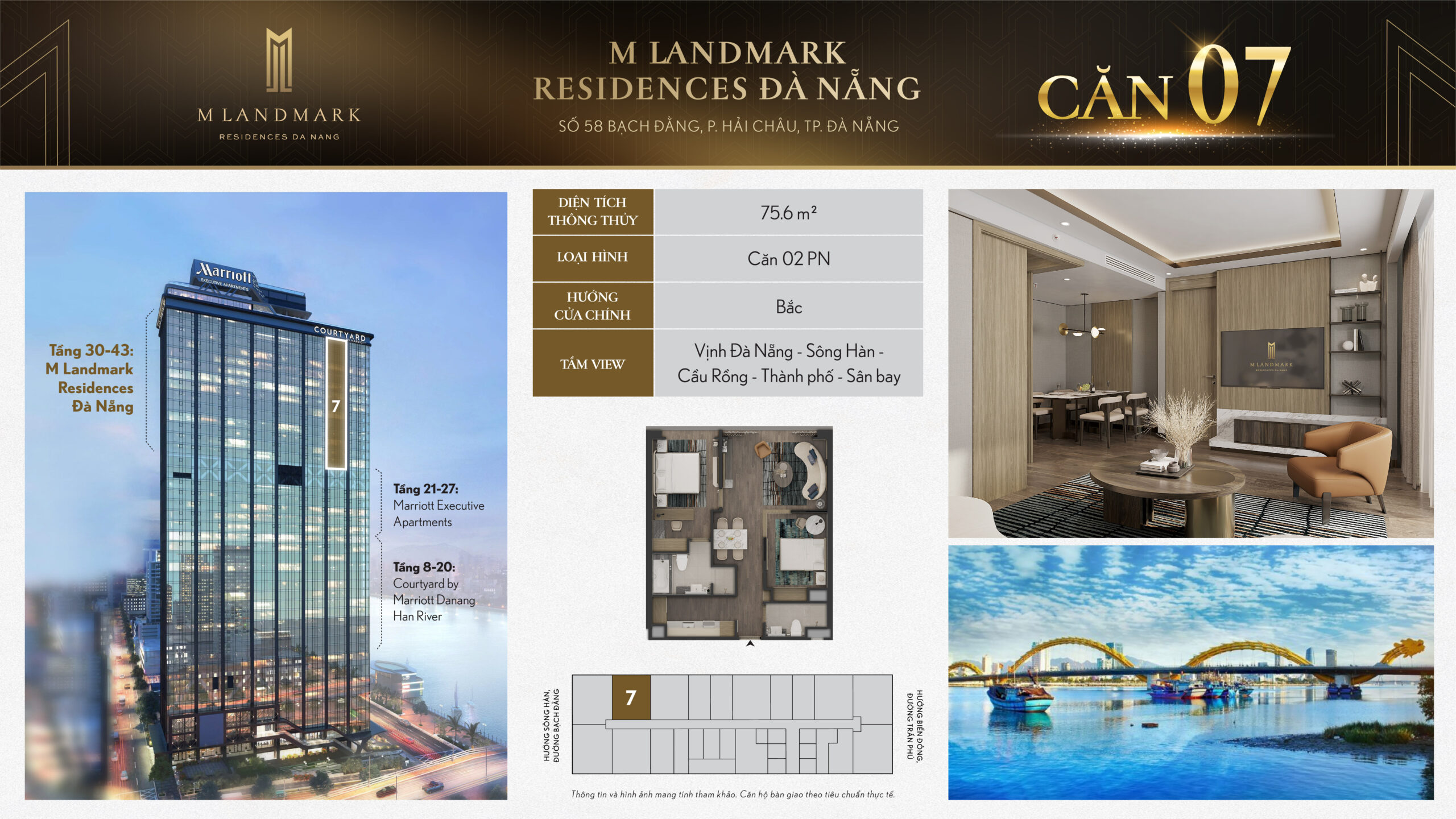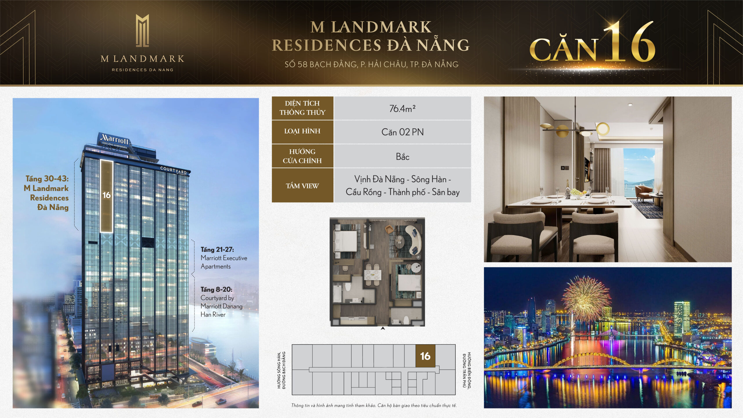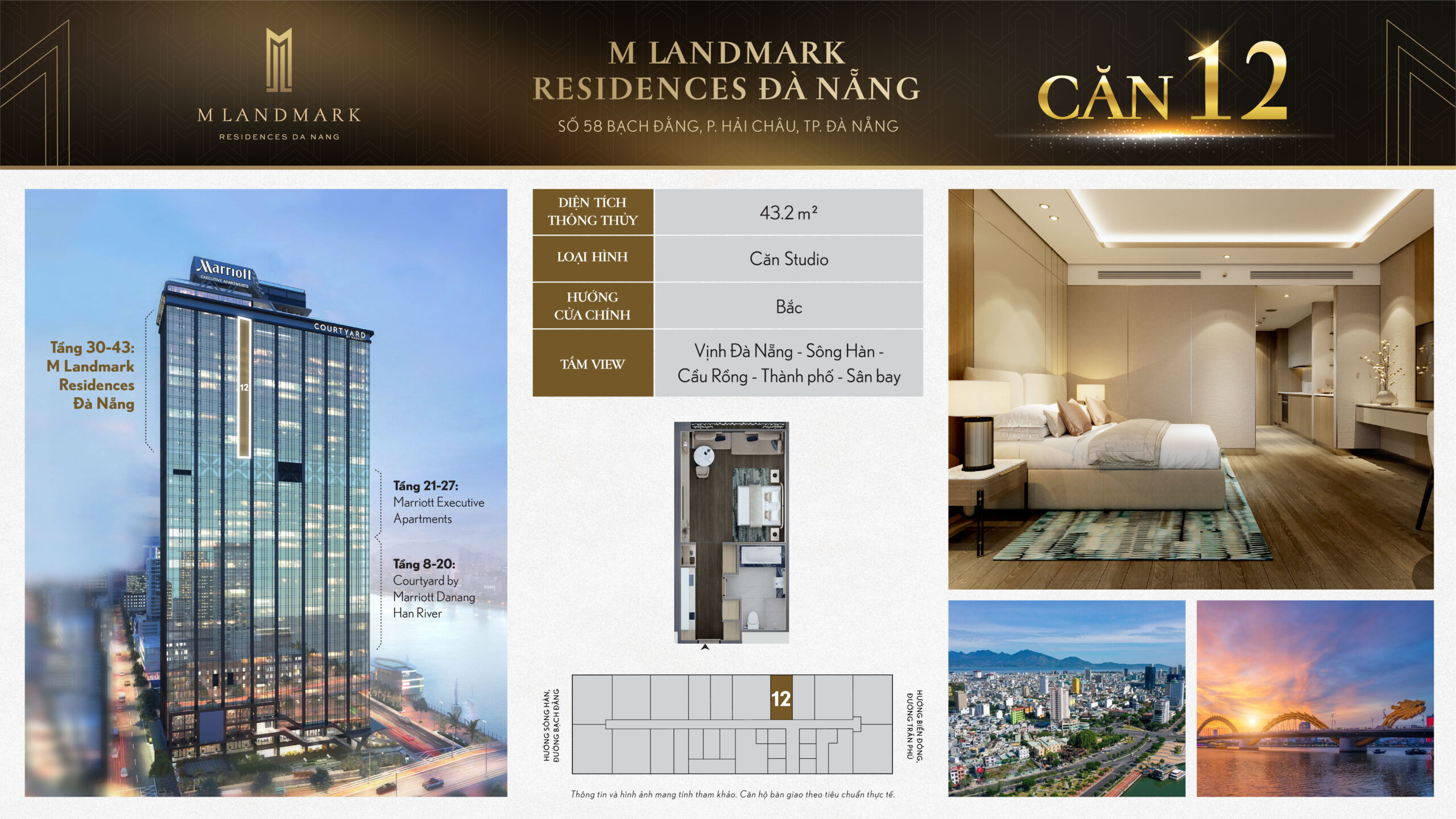 M Landmark Đà Nẵng – 224 căn hộ hạng sang tầng 30-44 tại 58 Bạch Đằng, view sông Hàn, vận hành bởi Marriott