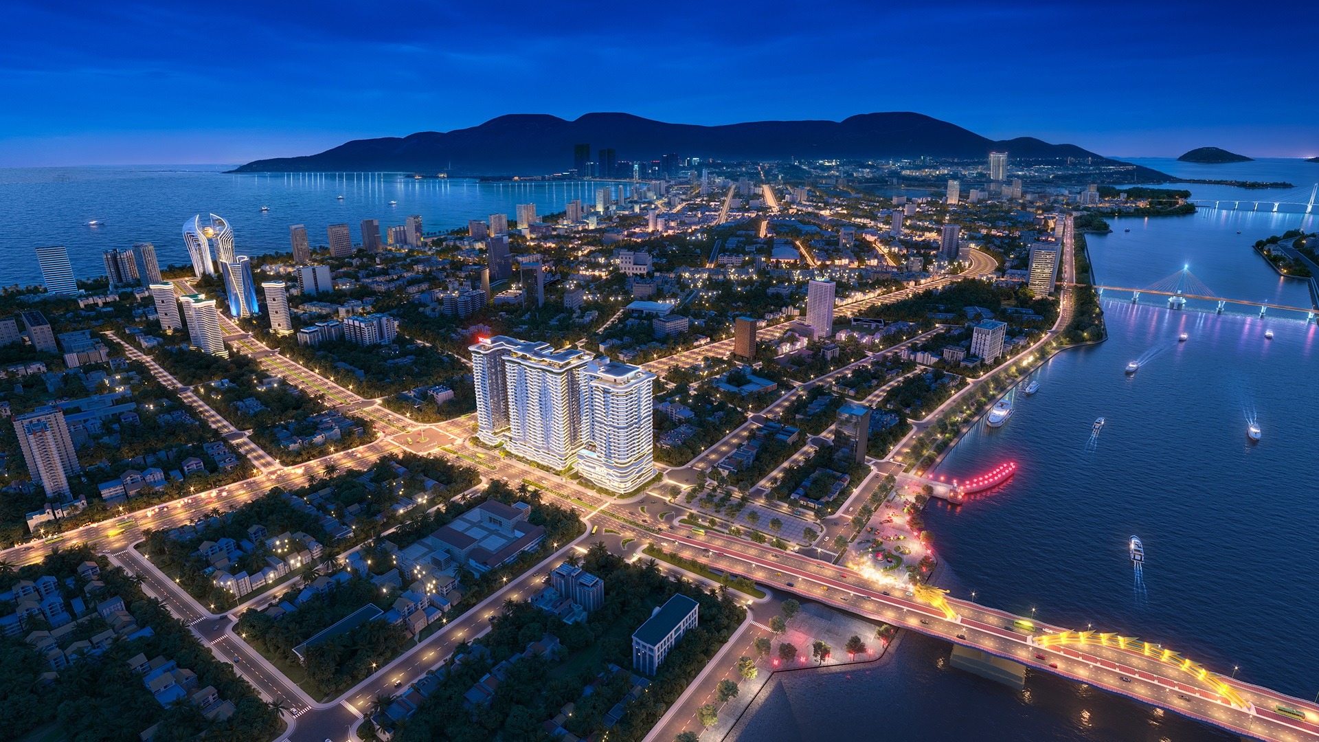 Căn hộ cao cấp 4 mặt tiền độc nhất, view trực diện cầu Rồng. Booking chỉ 50 triệu, chiết khấu 16%, vay 70%. Nhận tư vấn và bảng giá từ CĐT ngay!