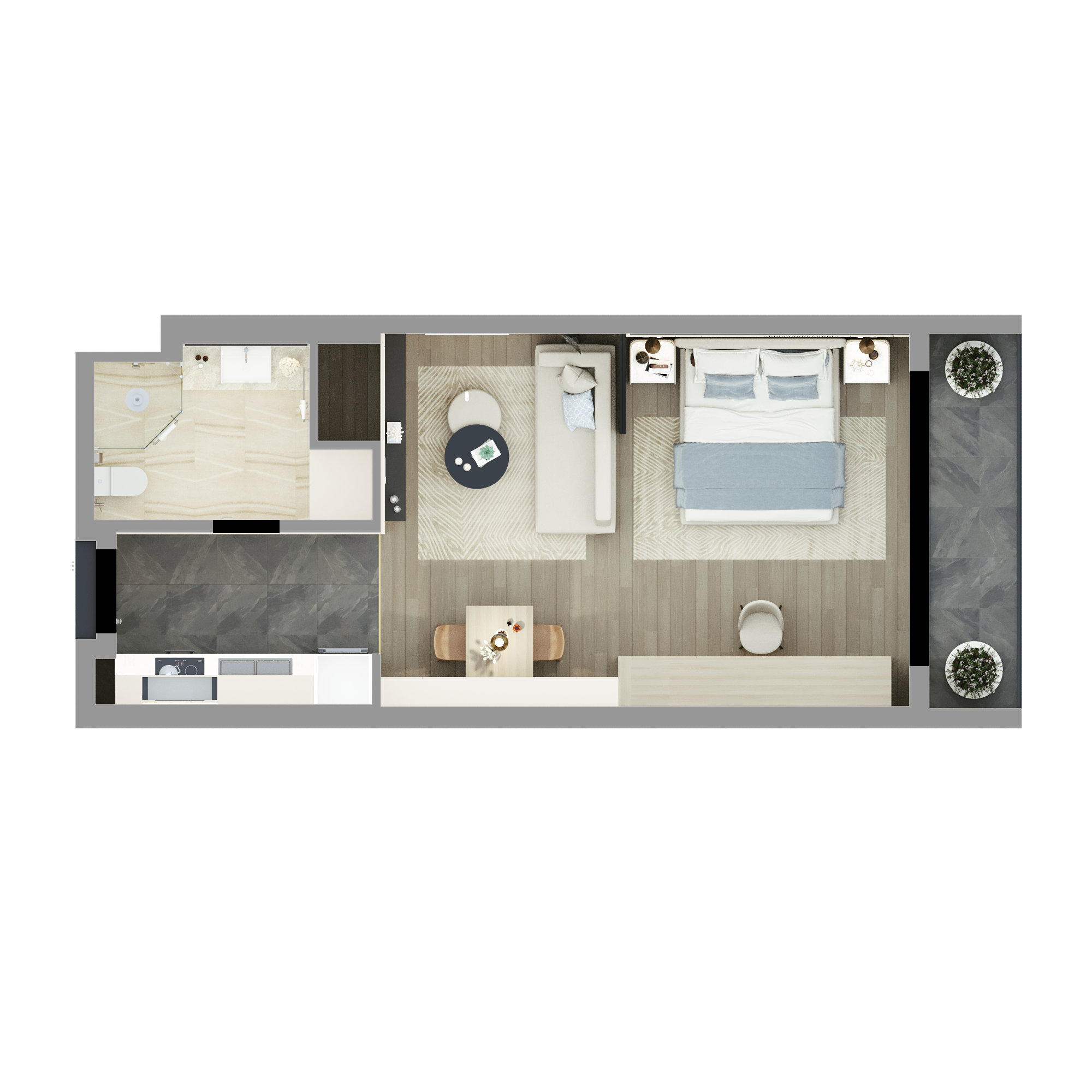 Tòa CT7 có cơ cấu 66% là căn studio và 17% là căn 1 phòng ngủ, còn lại 16% là căn 2 phòng ngủ và 1% là căn 3 phòng ngủ.