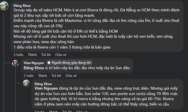 Theo thông tin cập nhật từ các sàn giao dịch bất động sản uy tín, giá bán Masteri Rivera Đà Nẵng hiện tại như sau: