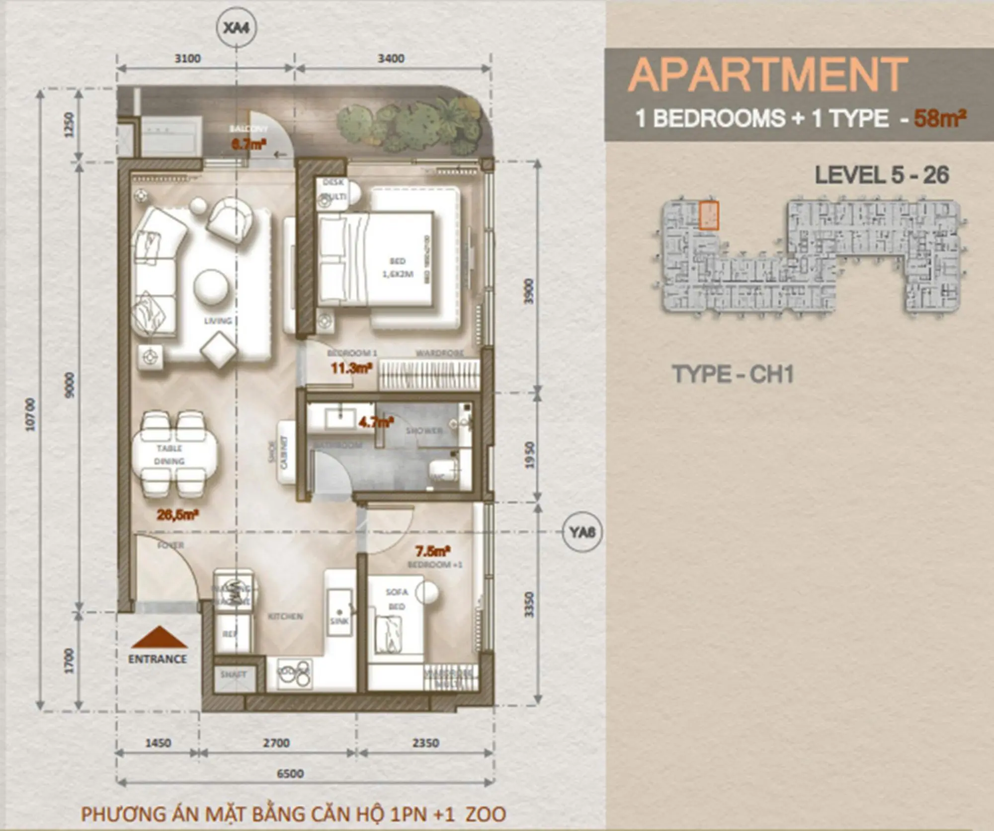 Căn 1PN+ The Legend City Đà Nẵng có 88 căn với giá dự kiến 116 triệu/m². Thiết kế đặc biệt với không gian “+1” linh hoạt làm phòng làm việc, phòng khách mở rộng hoặc khu vực đa năng.