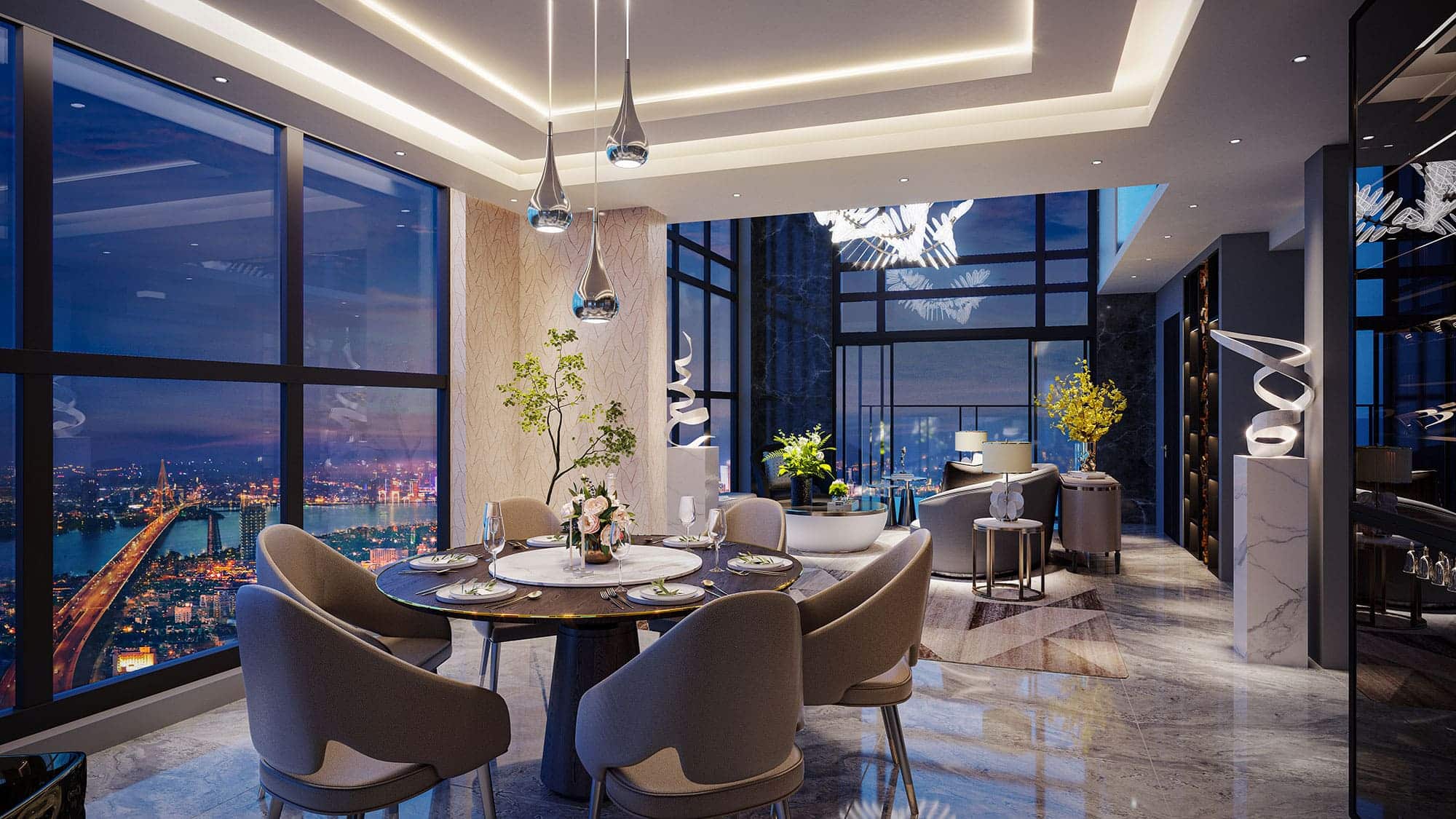 Penthouse tầng 22: Trần cao 6m tạo không gian vô cùng rộng rãi và sang trọng.