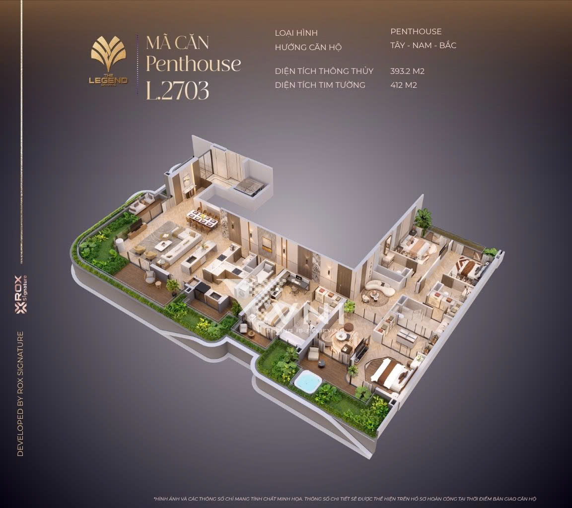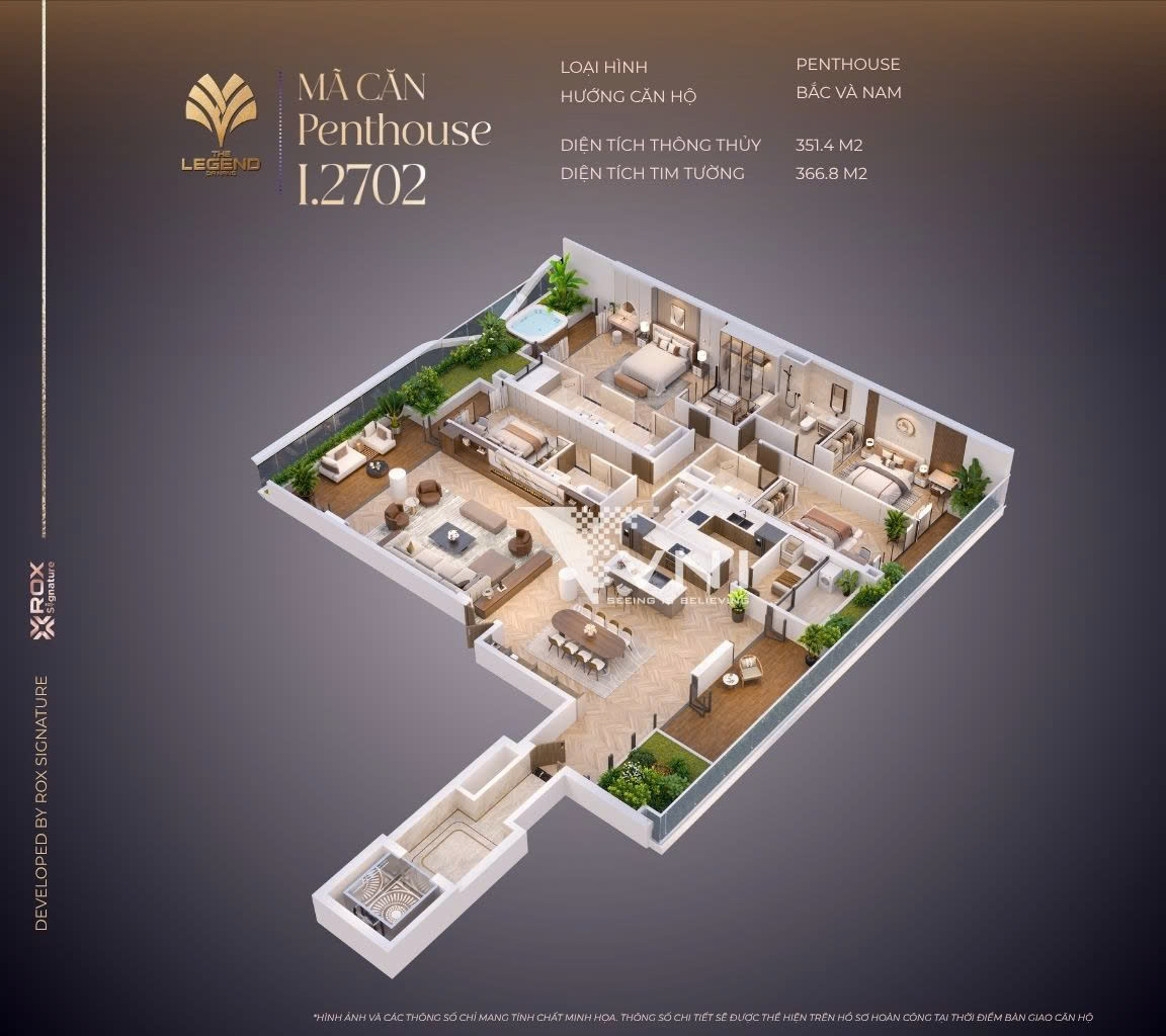 Chỉ 8 căn với giá dự kiến >116 triệu/m² (có thể 120-150 triệu/m²). Căn Penthouse The Legend City là sản phẩm siêu cao cấp cực kỳ khan hiếm dành cho giới thượng lưu.