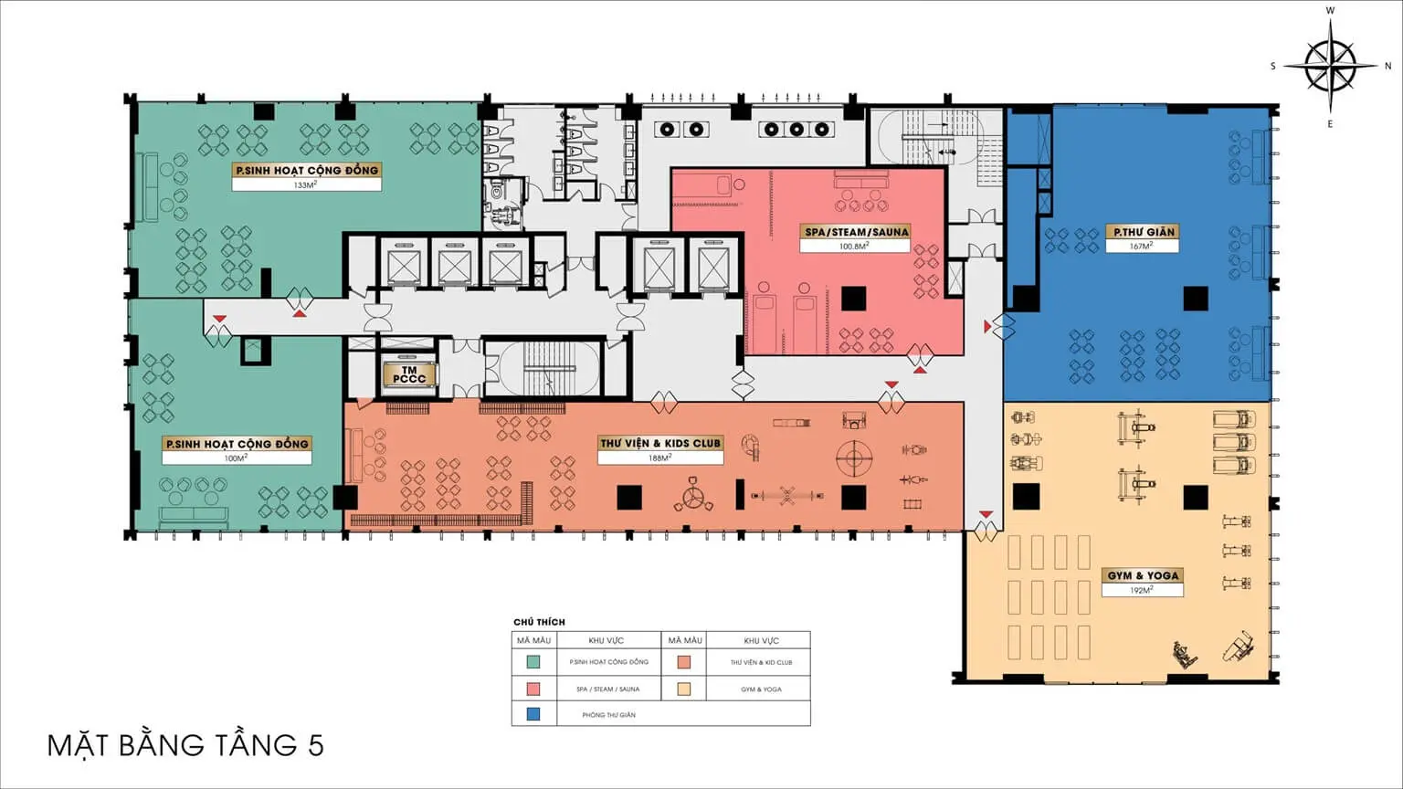 - Tầng 5: Tiện ích nội khu: phòng gym, lounge, phòng sinh hoạt cộng đồng